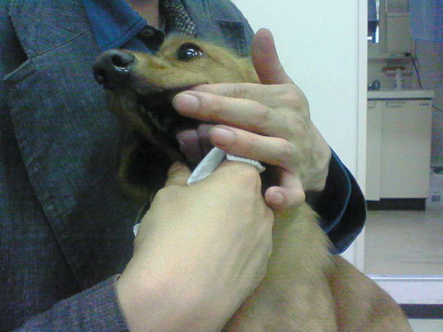 さっさと歯医者さんに行けば良いものを痛みを感じるたびにほーちゃん(ミニチュアダックス)の歯をせっせと磨いてあげていました。(なぜ?)